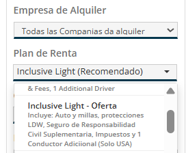 2. Cambia el plan de renta y selecciona "INCLUSIVE LIGHT-OFERTA" de esta manera la tarifa se actualiza y se aplica el 10% de descuento